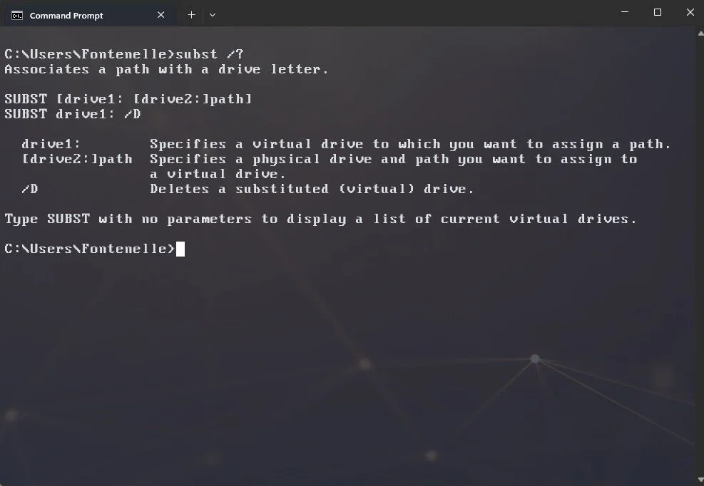 subst command help description.